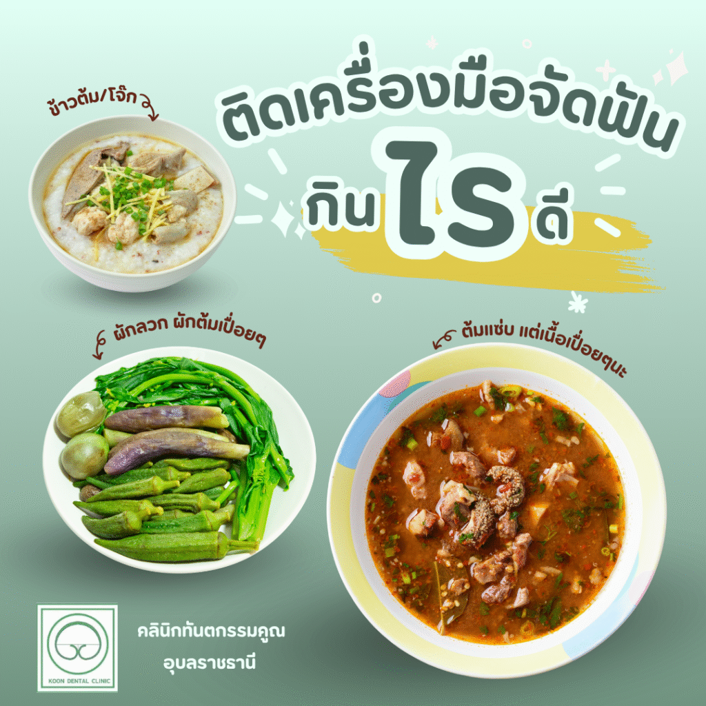 - อาหารแข็ง เหนียว กรอบ: อันนี้ตัวร้ายเลยจ้า! เพราะอาจจะทำให้เหล็กหลุด, ลวดทิ่ม, หรือฟันเคลื่อนที่ผิดปกติได้